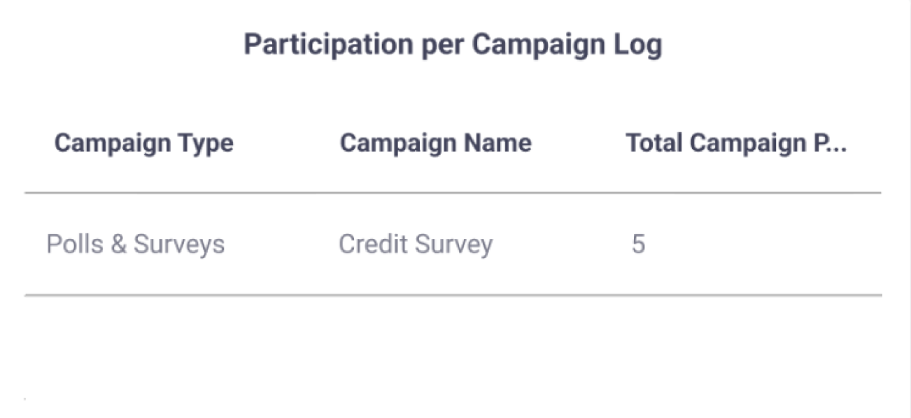 | Total Campaign Participation | Total number of end users who selected any campaign. |