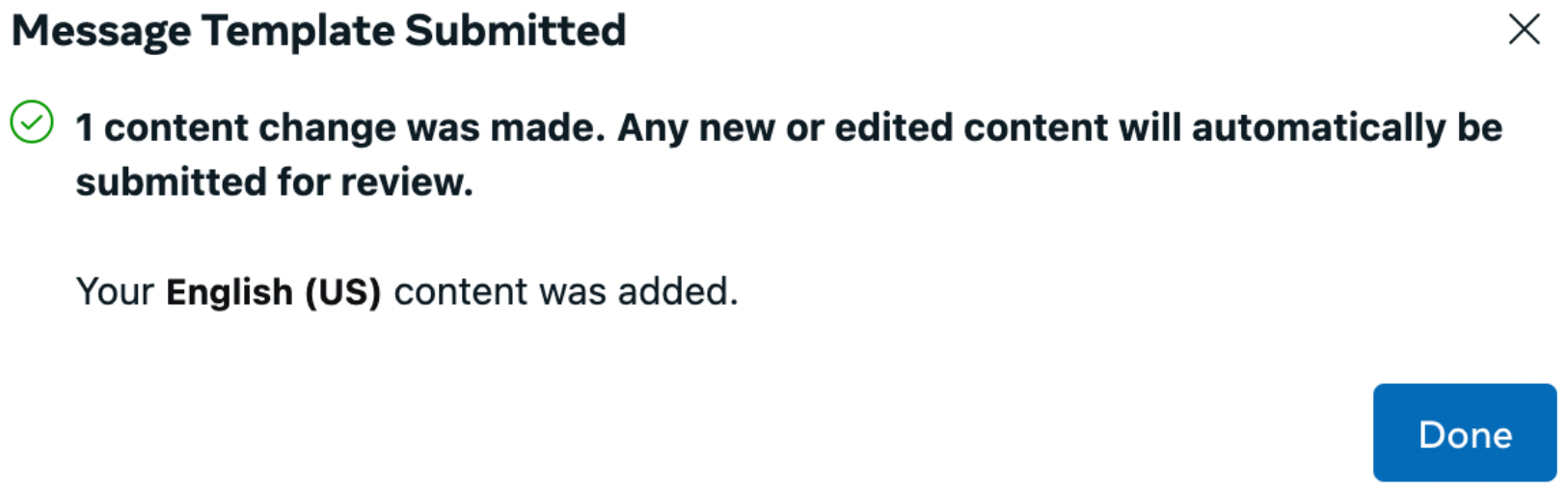 - The message template has been approved by Meta.