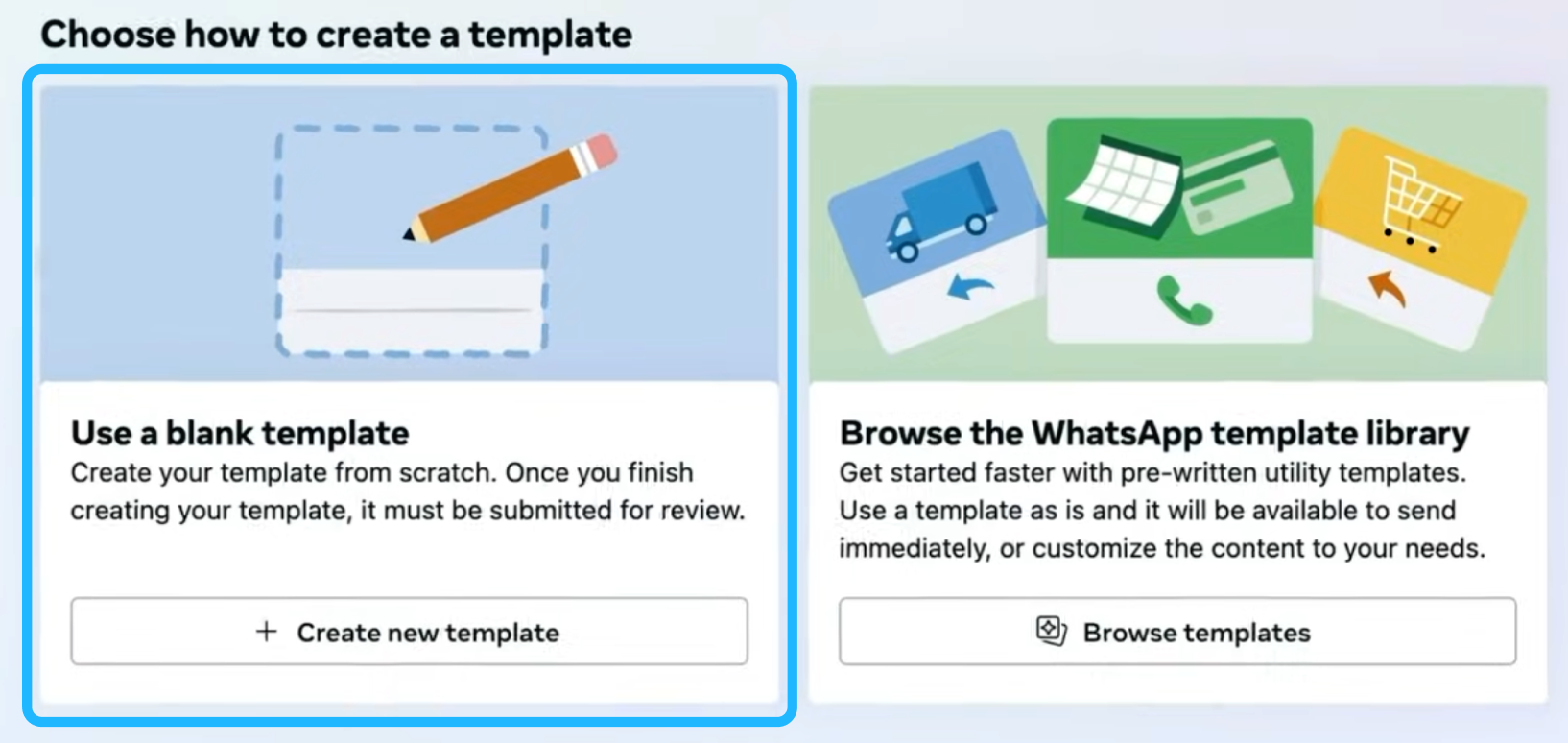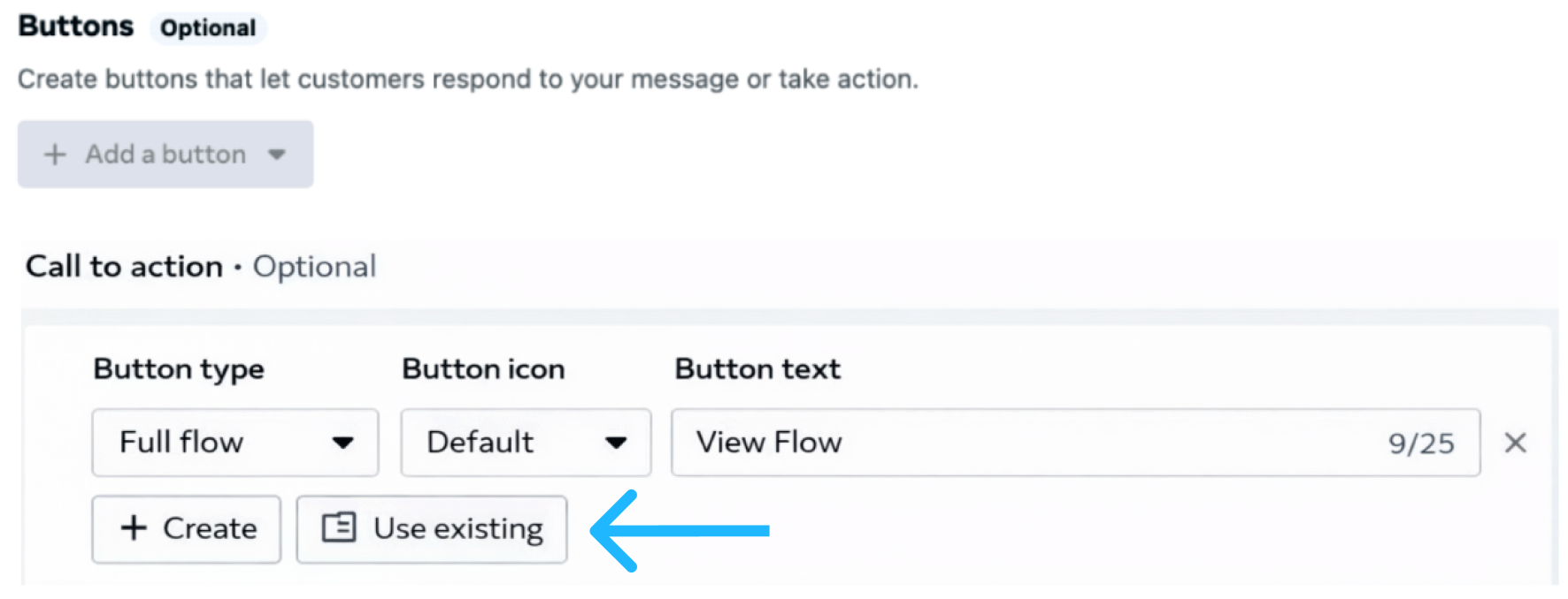 At this point, you must associate the message template with a Flow. WhatsApp Manager provides two ways to do this, depending on whether you want to create a new Flow or attach an existing one.