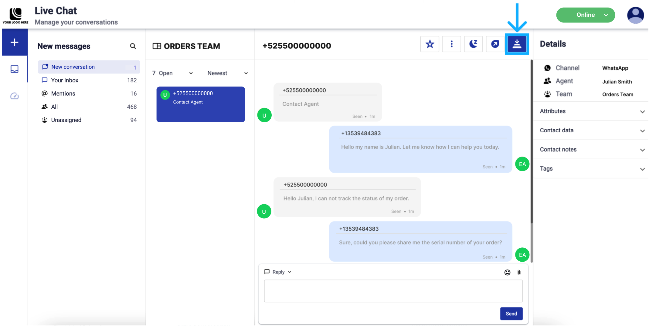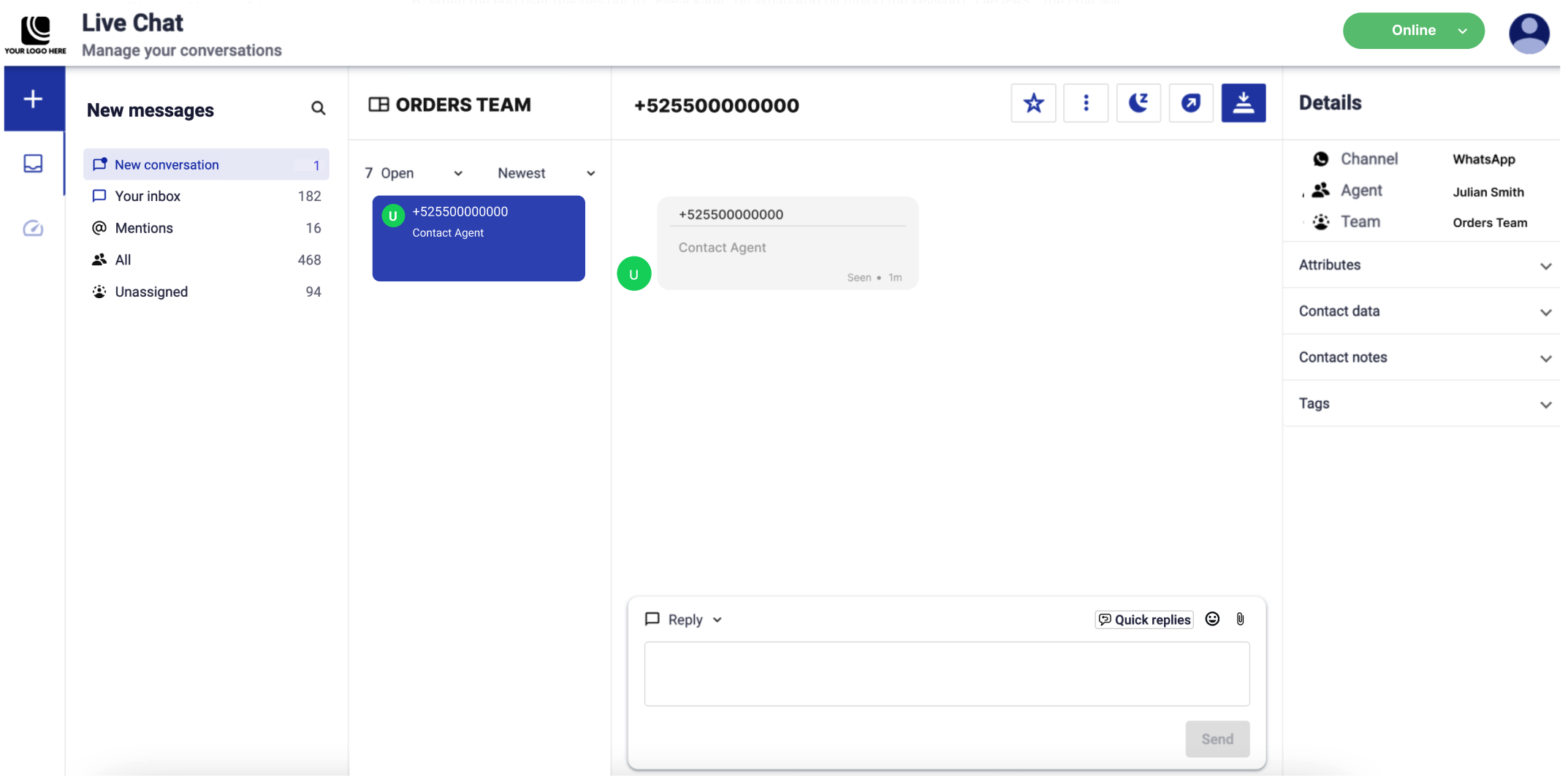 The conversation will then appear in the agent’s “New conversation” section, allowing for a prompt response.