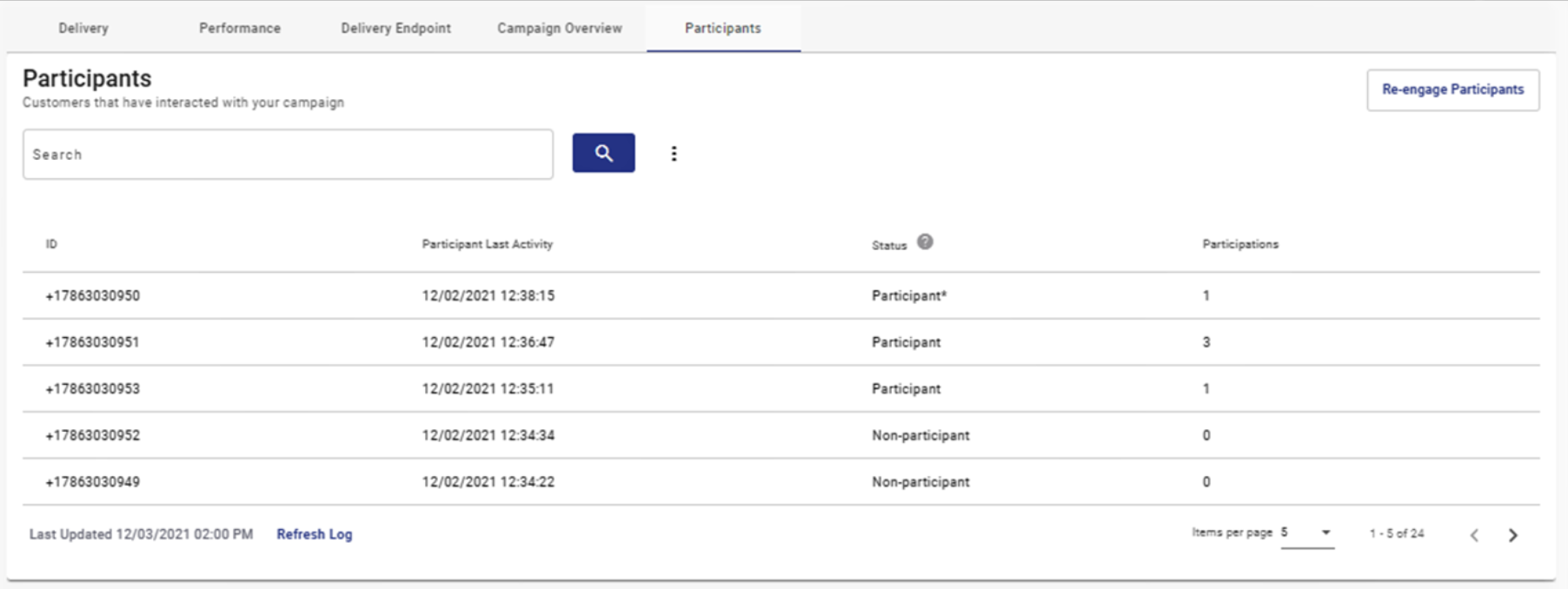 Also, within the Participants tab, there is a search function that allows you to carry out searches based on the participant status and contact ID.