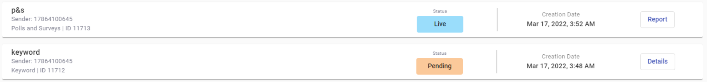 Clicking on Details of the Pending broadcast card will result in a redirect to the Details window, where you can change its Pending status or delete it.