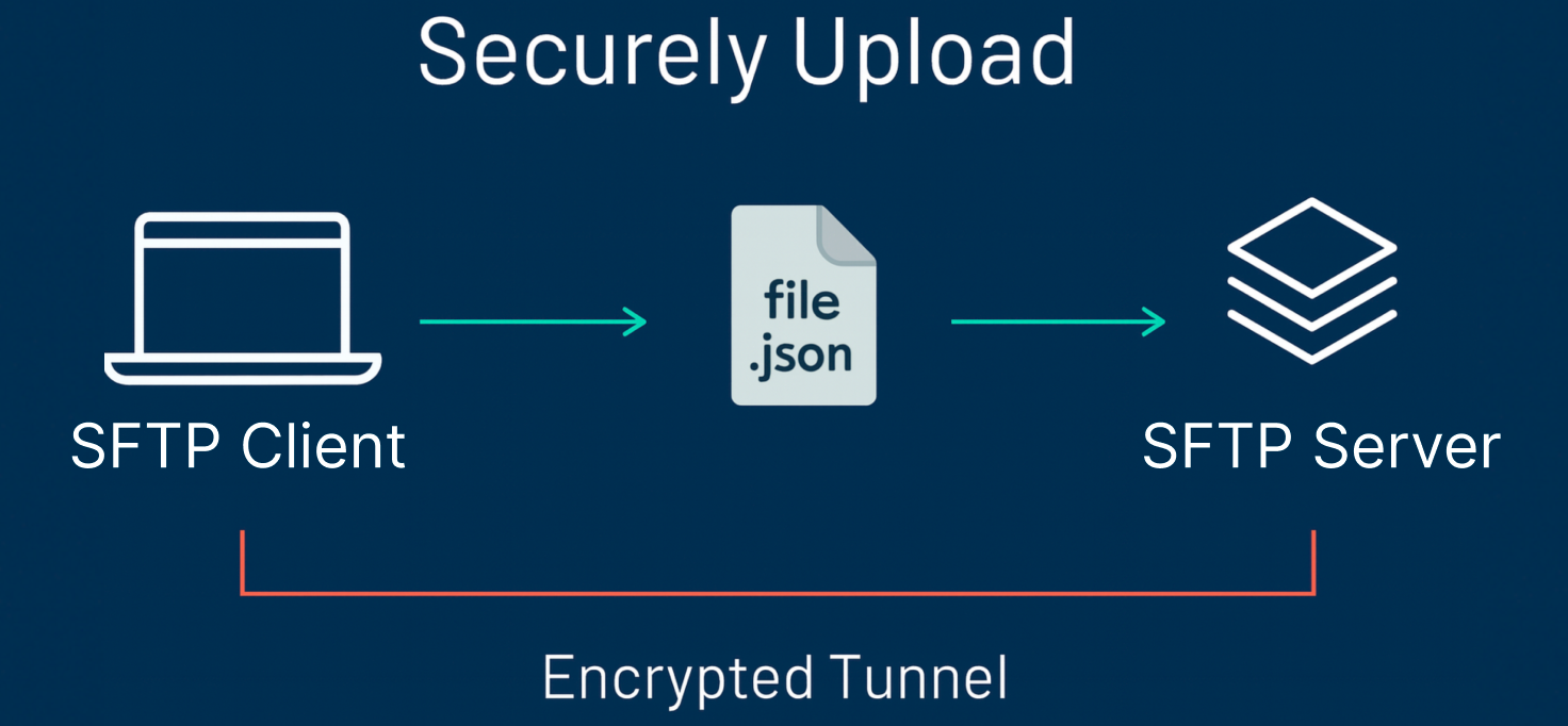 The setup is straightforward and can be completed using either command-line tools or graphical applications such as FileZilla. Once configured, the client can securely upload JSON files to the SFTP directory, where the platform will automatically detect and process them.