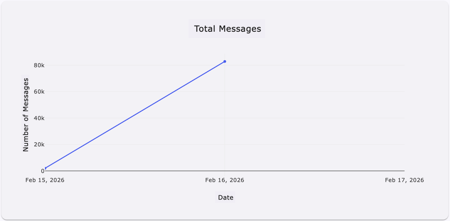 - Total Messages: Represents the total number of SMS messages processed within the selected period. This includes all outbound and inbound SMS traffic associated with the configured SMPP connection.