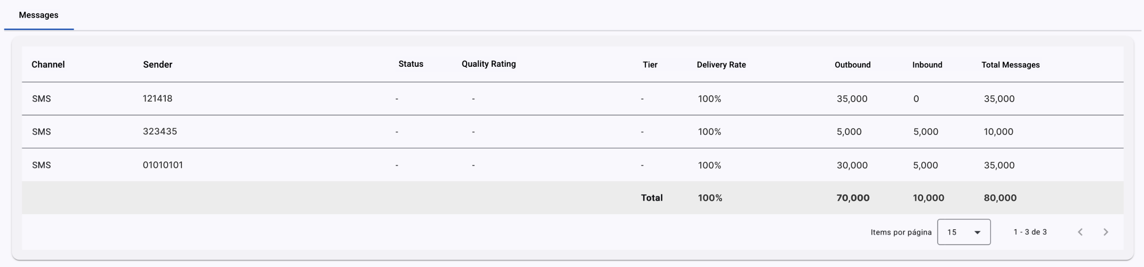 - Total Messages: Combined number of outbound and inbound SMS messages associated with the sender during the selected period.