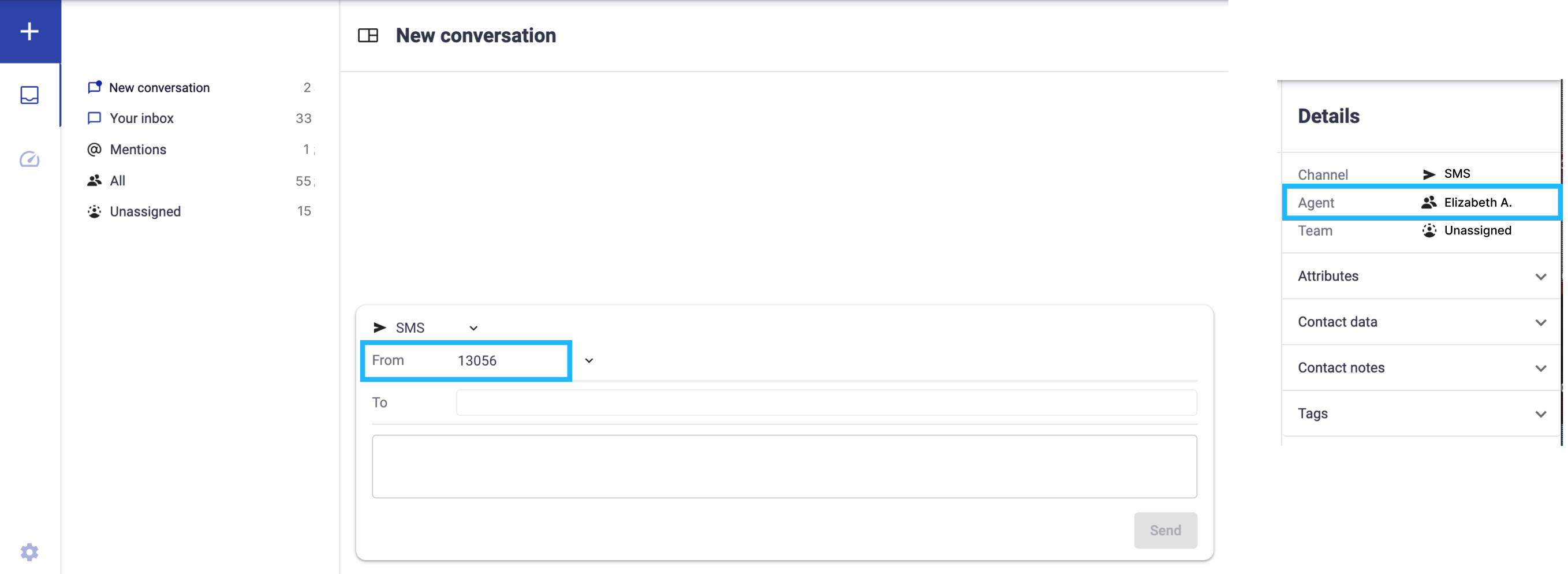 From the Details panel, you can also select who the conversation should be assigned to after your message has been sent.