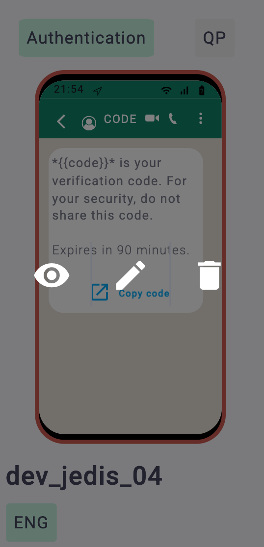 Again, under the eye icon, the possible actions within the preview window are dependent on the message template type, where the “standard” versions offer the possibility to modify basic information such as: